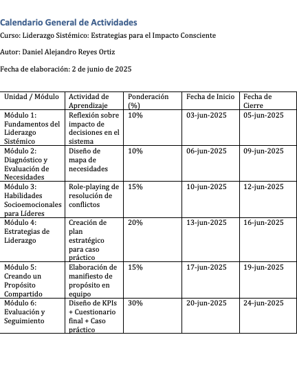 Evaluaciones para el Curso: Liderazgo Sistémico: Estrategias para el Impacto Consciente