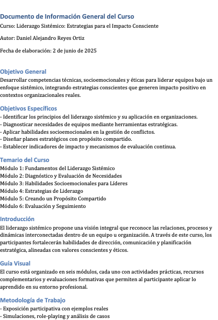 Evaluaciones para el Curso: Liderazgo Sistémico: Estrategias para el Impacto Consciente
